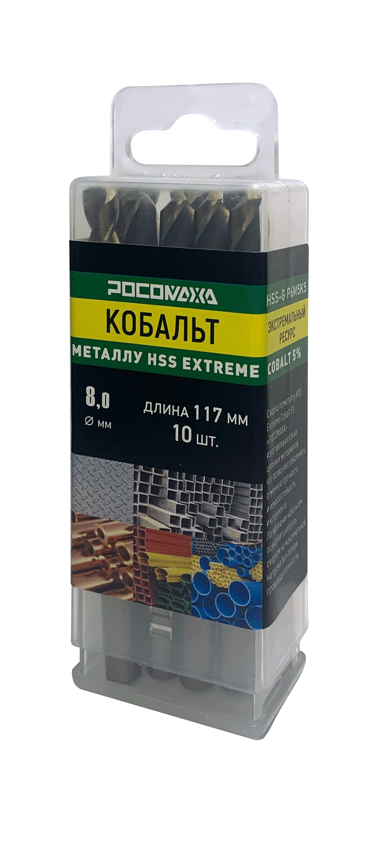 Сверло по металлу 8,0х117 мм Extreme COBALT 5% (HSS-G P6M5K5) "РОСОМАХА" [10 шт]
