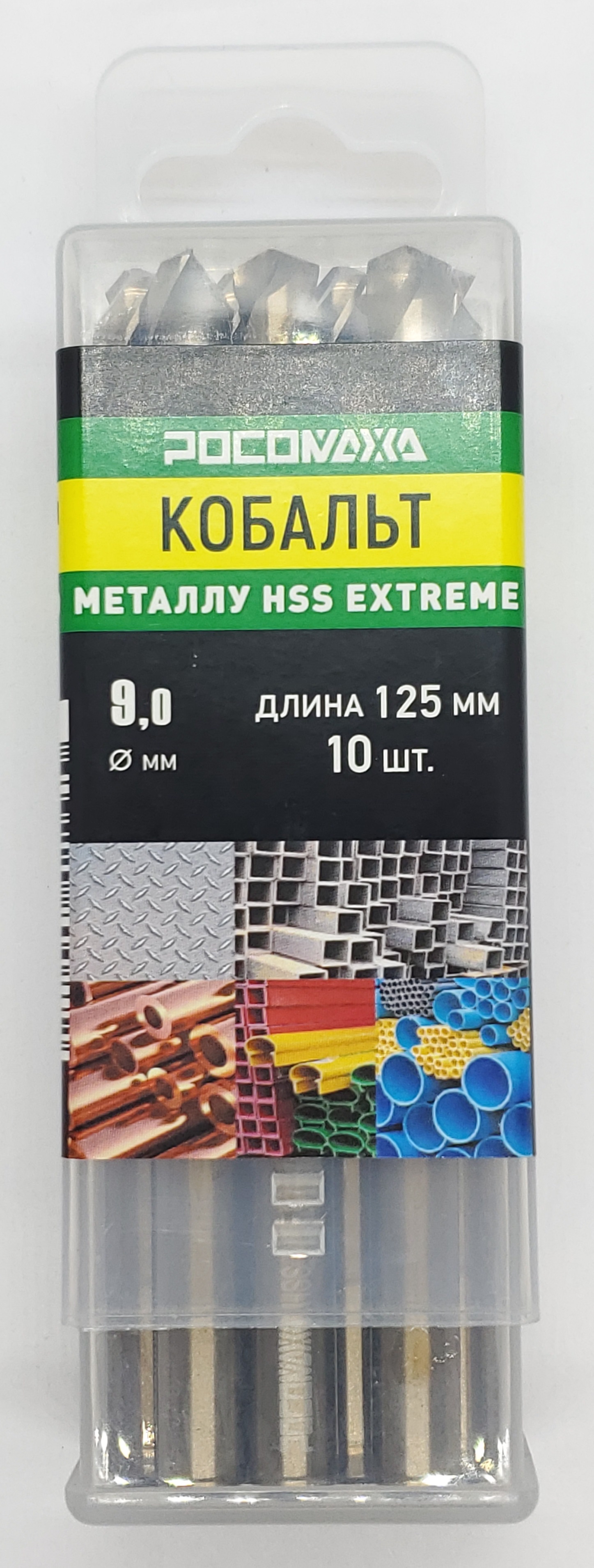 Сверло по металлу 9,0х125 мм Extreme COBALT 5% (HSS-G P6M5K5) "РОСОМАХА" [10 шт]