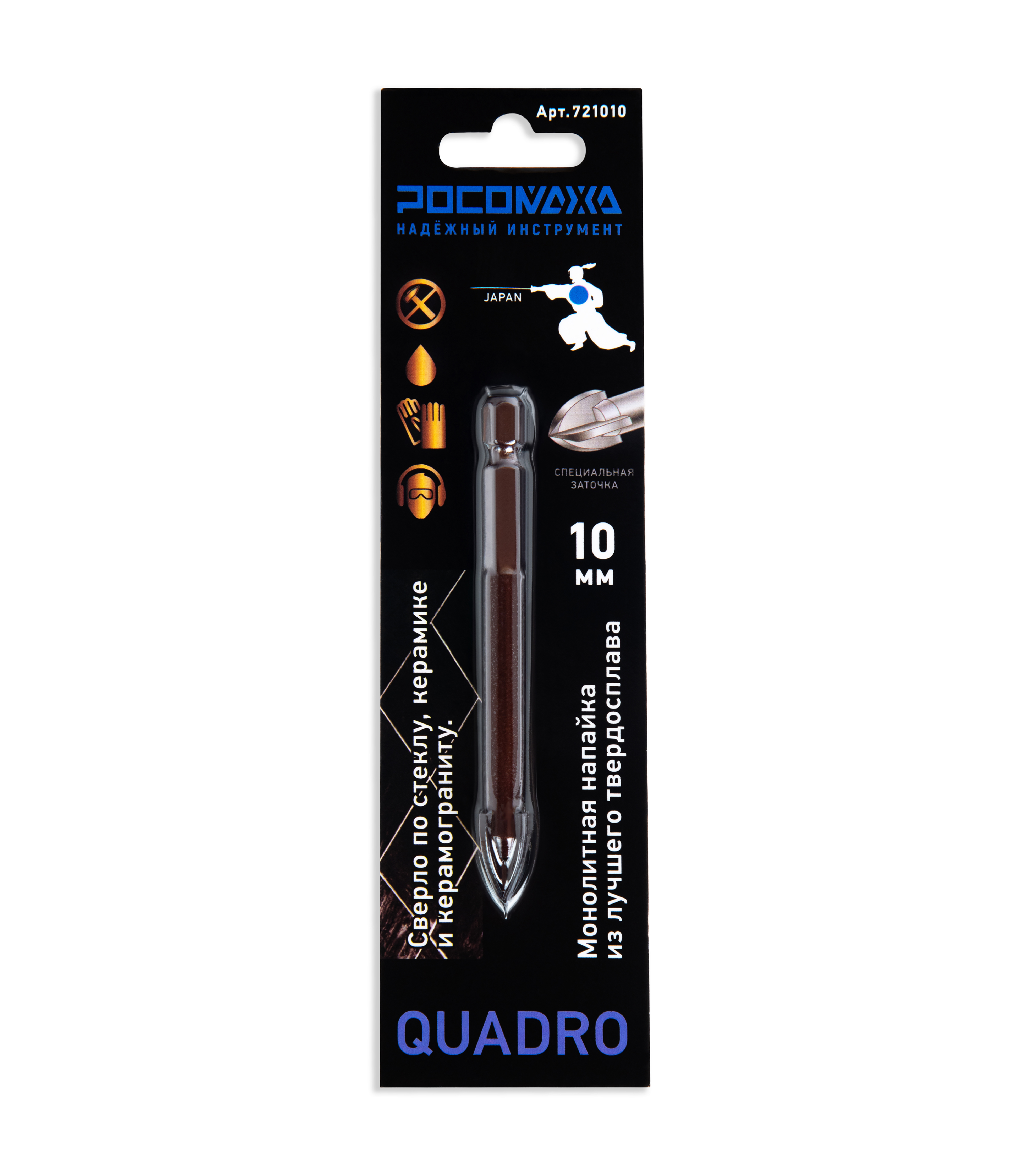 Сверло по стеклу, керамике и керамограниту 4 режущие грани 10 мм "РОСОМАХА" [10 шт]