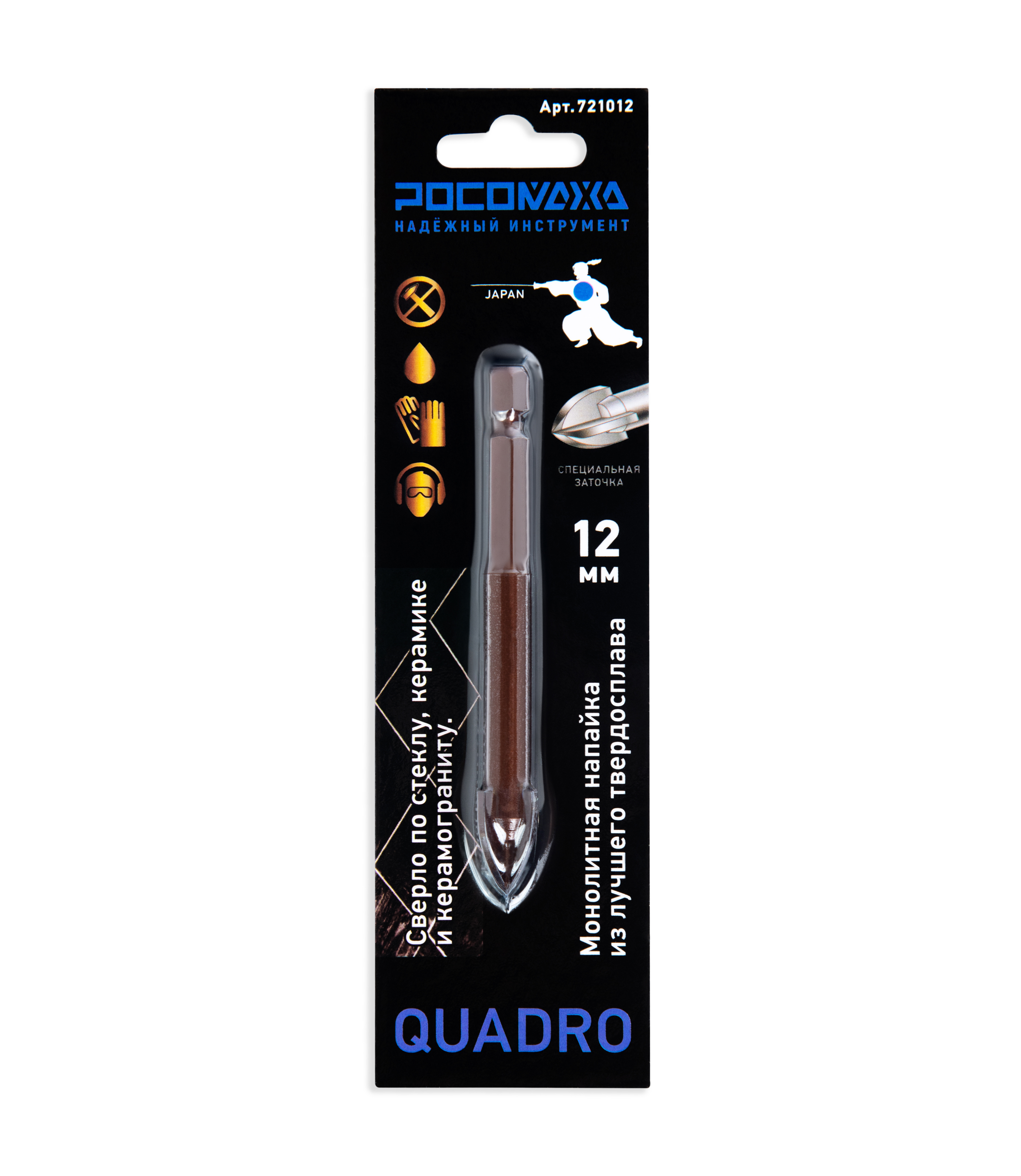Сверло по стеклу, керамике и керамограниту 4 режущие грани 12 мм "РОСОМАХА" [5 шт]