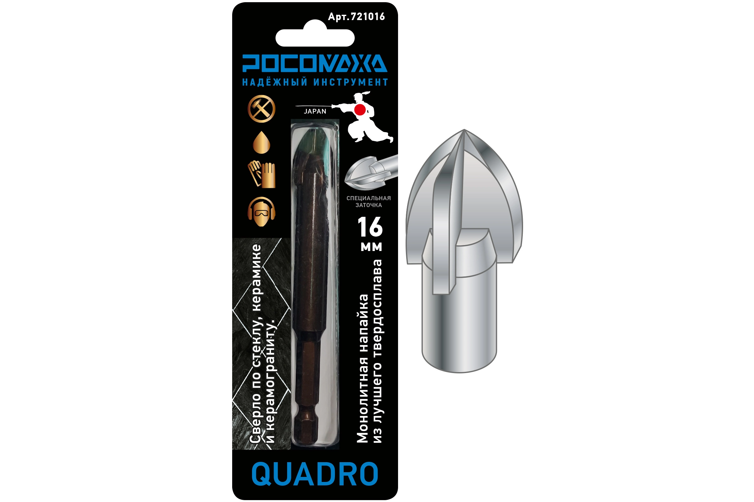 Сверло по стеклу, керамике и керамограниту 4 режущие грани 16 мм "РОСОМАХА" [5 шт]