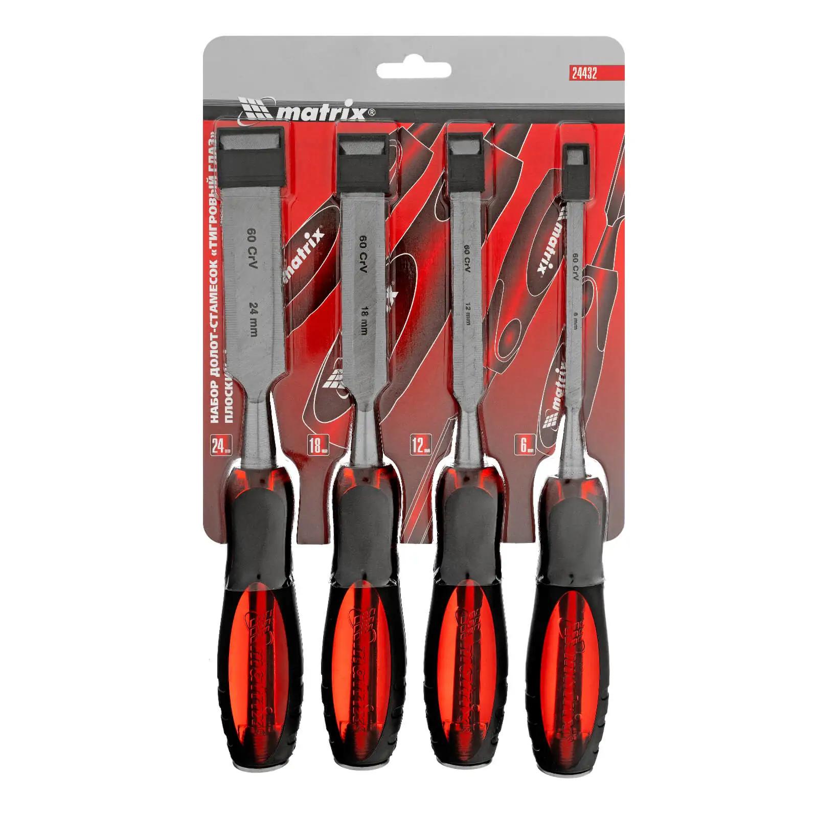 Набор долот-стамесок плоских "Тигровый глаз", 4 шт, 6-12-18-24 мм Matrix [4 шт]