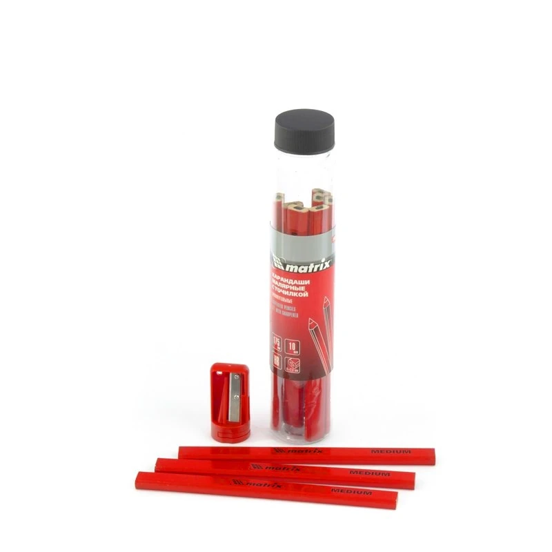 Набор карандашей малярных прямоугольных с точилкой в тубе, 175 мм, 10 шт Matrix [10 шт]