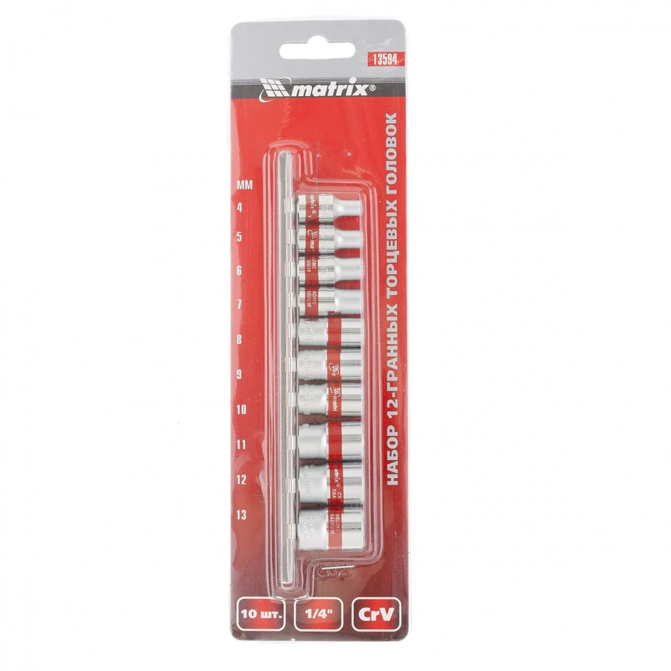 Набор торцевых головок, 1/4, двенадцатигранные, CrV, 10 шт, 4-13 мм Matrix [10 шт]