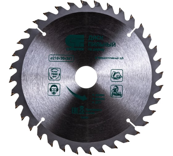 Диск пильный по дереву 210х30 мм, 36 зубьев Сибртех [1 шт]