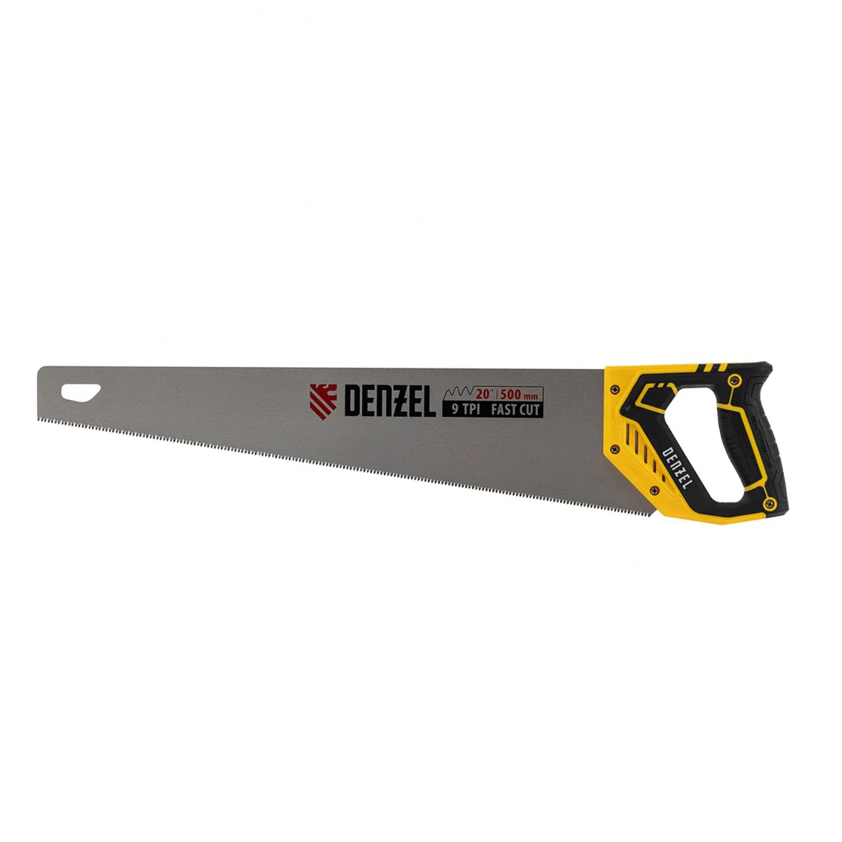 Ножовка по дереву, 500 мм, 9 TPI, зуб 3D, двухкомпонентная рукоятка Denzel [1 шт]