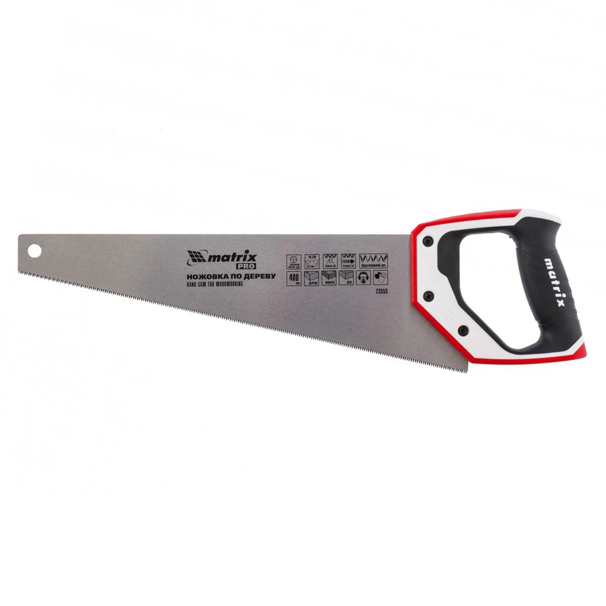 Ножовка по дереву Matrix PRO 23553 с полотном длиной 400 мм, калеными зубьями с шагом 14 TPI и 3D-заточкой, с 3-компонентной рукояткой, предназначена для точных пильных работ с заготовками из древесины, фанеры и ДСП. Может выполнять продольное и поперечное пиление. Шаг зубьев составляет 14 TPI, что обеспечивает точность реза. 3D-заточка зубьев увеличивает производительность ножовки. Инструмент будет полезен в столярной мастерской, а также пригодится в быту.ПреимуществаПолотно изготовлено из пружинной стали 65Mn, благодаря чему обладает прочностью и износоустойчивостью.Твердость каленых зубьев составляет 46-52 HRC, поэтому они долго держат заточку.На полотно нанесено защитное лаковое покрытие, предохраняющее его от коррозии.Полотно надежно зафиксировано 3 винтами, поэтому не выпадет из рукоятки при интенсивном пилении.Трехкомпонентная обрезиненная рукоятка удобно ложится в руку и не скользит в ладони, что снижает нагрузку на кисть во время длительной работы.Ножовка изготовлена на японском оборудовании с соблюд