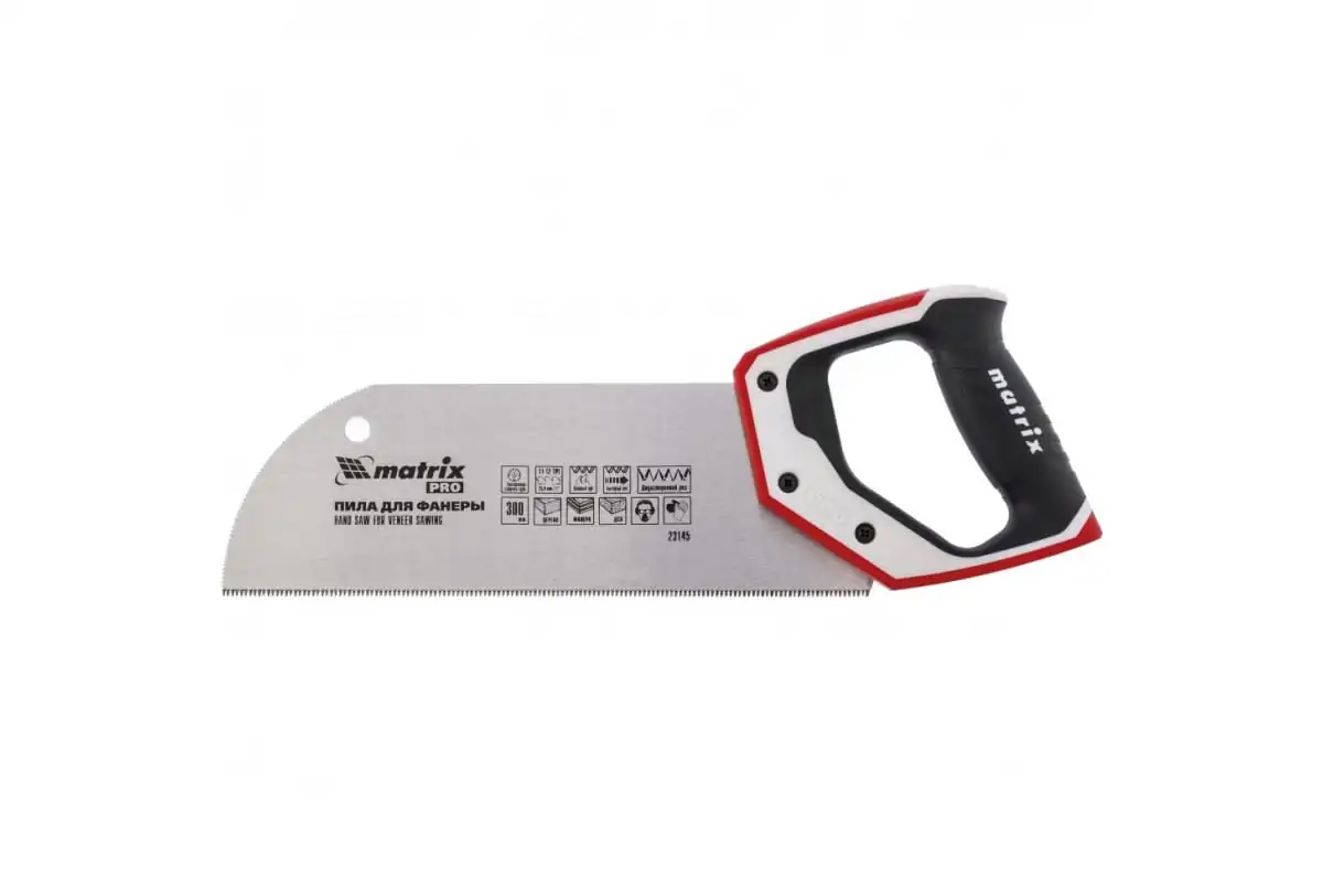 Пила для фанеры с запилом Matrix PRO 23145 с полотном длиной 300 мм, с калеными зубьями с 3D-заточкой и шагом 11-12 TPI, с 3-компонентной рукояткой, используется при проведении столярных работ. Пилит древесину, фанеру, ДСП в продольном и поперечном направлении. Пила подходит для работы со стуслом. Благодаря мелким зубьям с шагом 2-2,3 мм рез получается ровным и гладким. Трехгранная заточка зубьев повышает производительность инструмента. Запил в передней части полотна облегчает начало распиловки.ПреимуществаПолотно из углеродистой пружинной стали 65Mn характеризуется прочностью и деформационной стойкостью.Каленые зубья долго держат заточку, что обеспечивает высокий рабочий ресурс инструмента.Антикоррозийное лаковое покрытие предотвращает образование ржавчины, продлевая срок службы пилы.Эргономичная трехкомпонентная рукоятка с нескользящей поверхностью обеспечивает комфорт и безопасность во время работы.Пила, изготовленная на японском оборудовании под строгим технологическим контролем, обладает высоким качество