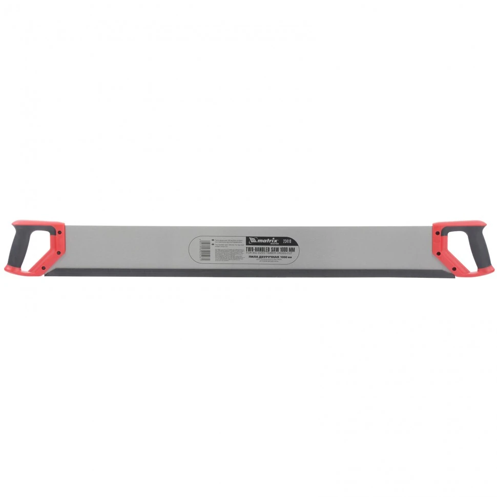 Пила двуручная, 1000 мм, двухкомпонентные рукоятки Matrix 23410 изготовлена из холоднокатаной стали марки 65 Mn.Пластиковые двухкомпонентные рукоятки удобны для захвата.