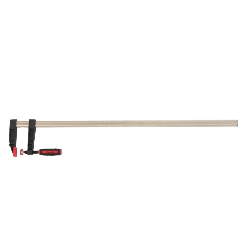 F-образная струбцина Matrix 20410, 1000 х 120 х 1100 мм, используется для зажима металлических, деревянных и других заготовок для их последующей обработки или сборки. Представляет собой штангу, на которой установлены 2 кронштейна — неподвижный и подвижный. Деталь помещается между ними и прижимается к губкам при помощи винтового зажима с трапециевидной резьбой. Величина захвата может достигать 1000 мм, она регулируется при помощи подвижного кронштейна. Струбцину применяют при выполнении слесарных и столярных работ. Металлическая конструкция выдерживает высокую температуру, поэтому инструмент пригодится во время сварки, при этом необходимо будет снять пластиковые накладки с губок.ПреимуществаПрочная стальная штанга выдерживает повышенные нагрузки и позволяет фиксировать заготовки со значительным усилием.На губках установлены пластиковые накладки, которые предохраняют поверхность детали от повреждения при сильном сжатии.Эргономичная двухкомпонентная обрезиненная рукоятка имеет рельефный дизайн и не выскальзывает