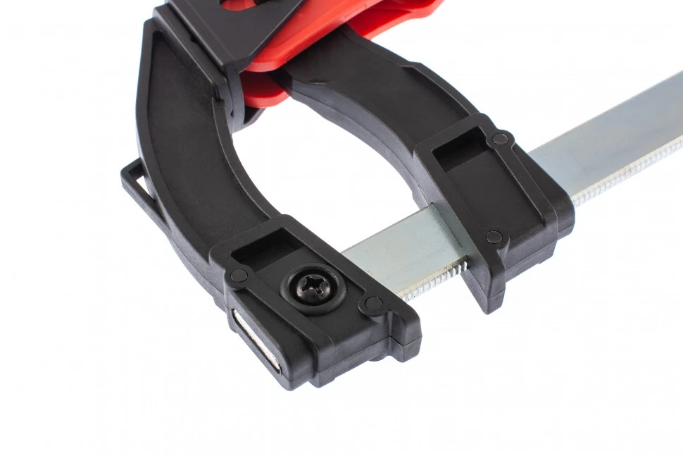 Реечная быстрозажимная струбцина Matrix 20736, 200 х 90 х 290 мм, штанга 5 х 20 мм, с пластиковым корпусом и рычажным храповым механизмом, используется для зажимания и удержания заготовок с целью их скрепления или последующей обработки. Рычажно-храповый механизм позволяет надежно зафиксировать деталь, пошагово перемещая подвижную губку вдоль штанги. Струбцина пригодится при выполнении столярных работ в мастерской, дома или на даче.ПреимуществаСтальная штанга выдерживает значительные нагрузки.Корпус из ударопрочного пластика устойчив к повреждениям и долговечен.Пластиковые губки не повреждают поверхность деревянных заготовок.