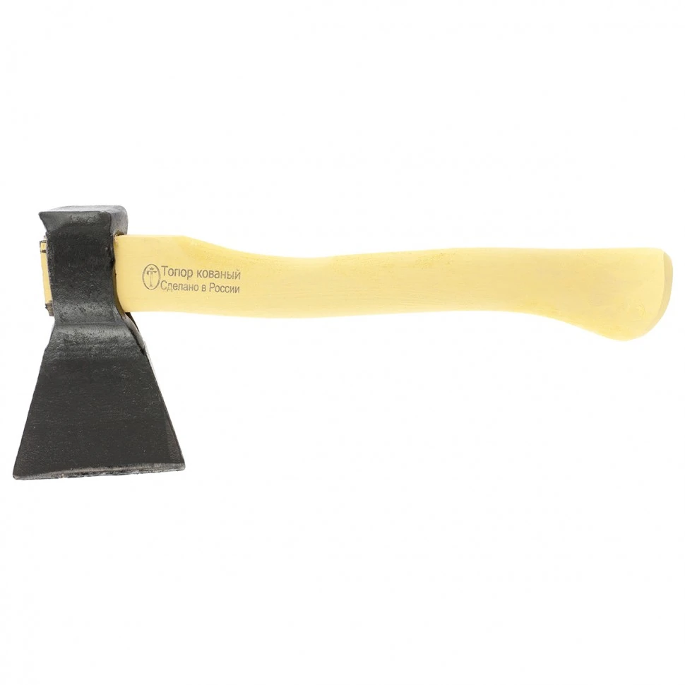 Кованый топор 21690, 600/850 г, в сборе с деревянным топорищем 350 мм, Б1, — эффективное решение для грубой обработки древесины. Им можно выполнить большинство хозяйственных и строительных работ: срубить ветки, заготовить дрова, отделить кору от заготовок и т.д.ПреимуществаВысокие эксплуатационные качества полотна достигаются за счет инструментальной стали 60Г, закаленной до твердости 50 HRC.Голова выкована из цельнометаллической заготовки, таким образом достигается ее конструкционная прочность и исключается риск появления трещин и сколов.Клин, установленный в месте всада топорища в головку, является залогом их надежной фиксации.Лакокрасочное покрытие гарантирует защиту полотна от коррозии.На топорище нанесена шпатлевка и пленка, а также оно отшлифовано, что позволяет защитить древесину от негативных воздействий.Благодаря небольшой рукоятке длиной 350 мм и весу 850 г топор легко поместится в рюкзак, что особенно актуально в походе.