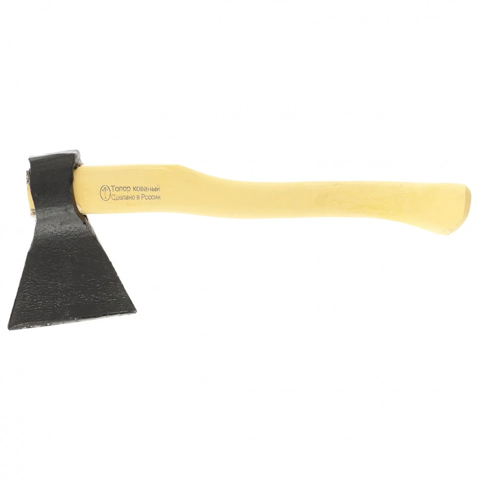 Кованый топор 21691, 800/950 г, в сборе с деревянным топорищем 400 мм, Б2, — эффективное решение для грубой обработки древесины. Им можно выполнить большинство хозяйственных и строительных работ: срубить ветки, заготовить дрова, отделить кору от заготовок и т.д.ПреимуществаВысокие эксплуатационные качества полотна достигаются за счет инструментальной стали 60Г, закаленной до твердости 50 HRC.Голова выкована из цельнометаллической заготовки, таким образом достигается ее конструкционная прочность и исключается риск появления трещин и сколов.Клин, установленный в месте всада топорища в головку, является залогом их надежной фиксации.Лакокрасочное покрытие гарантирует защиту полотна от коррозии.На топорище нанесена шпатлевка и пленка, а также оно отшлифовано, что позволяет защитить древесину от негативных воздействий.Благодаря небольшой рукоятке длиной 400 мм и весу 950 г топор легко поместится в походный рюкзак.