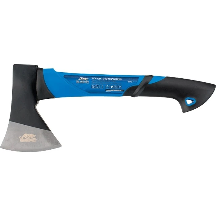 Топор плотницкий, 600 г, двухкомпонентная обрезиненная рукоятка Барс [1 шт]