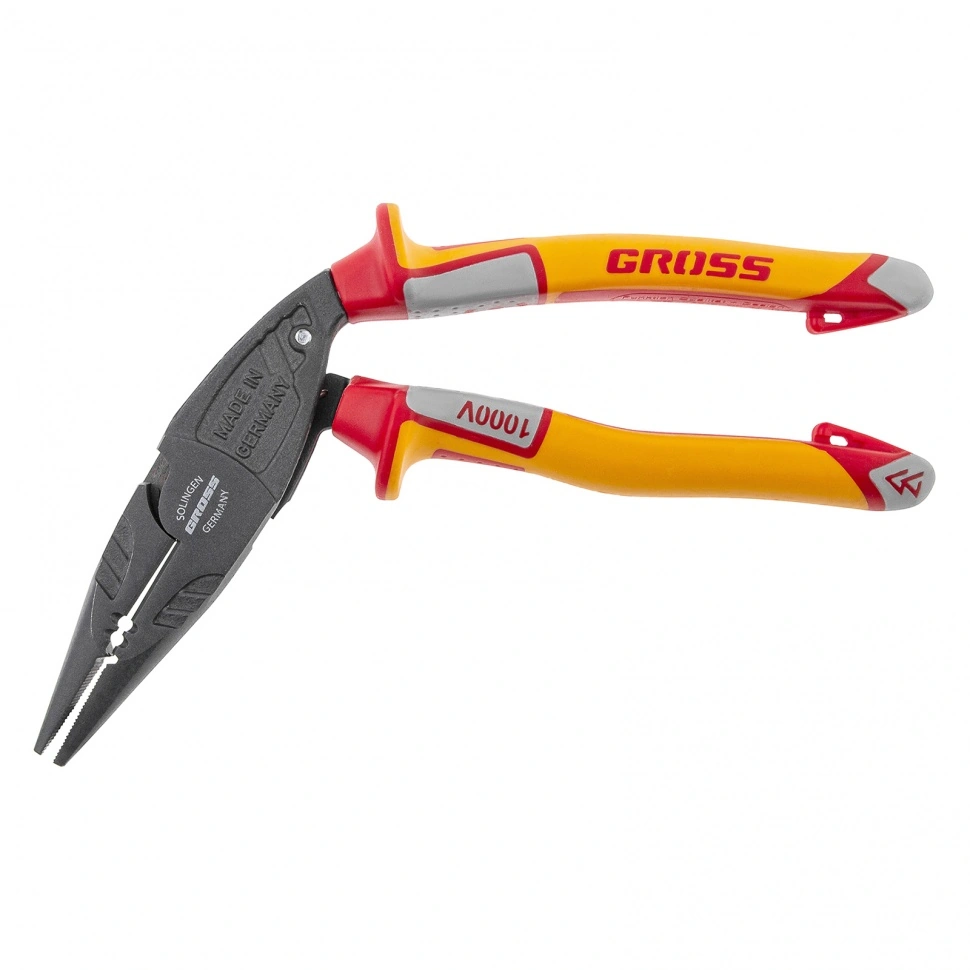 Длинногубцы с изогнутой головой, комбинированные, диэлектрические рукоятки до 1000 В, 200 мм Gross [1 шт]
