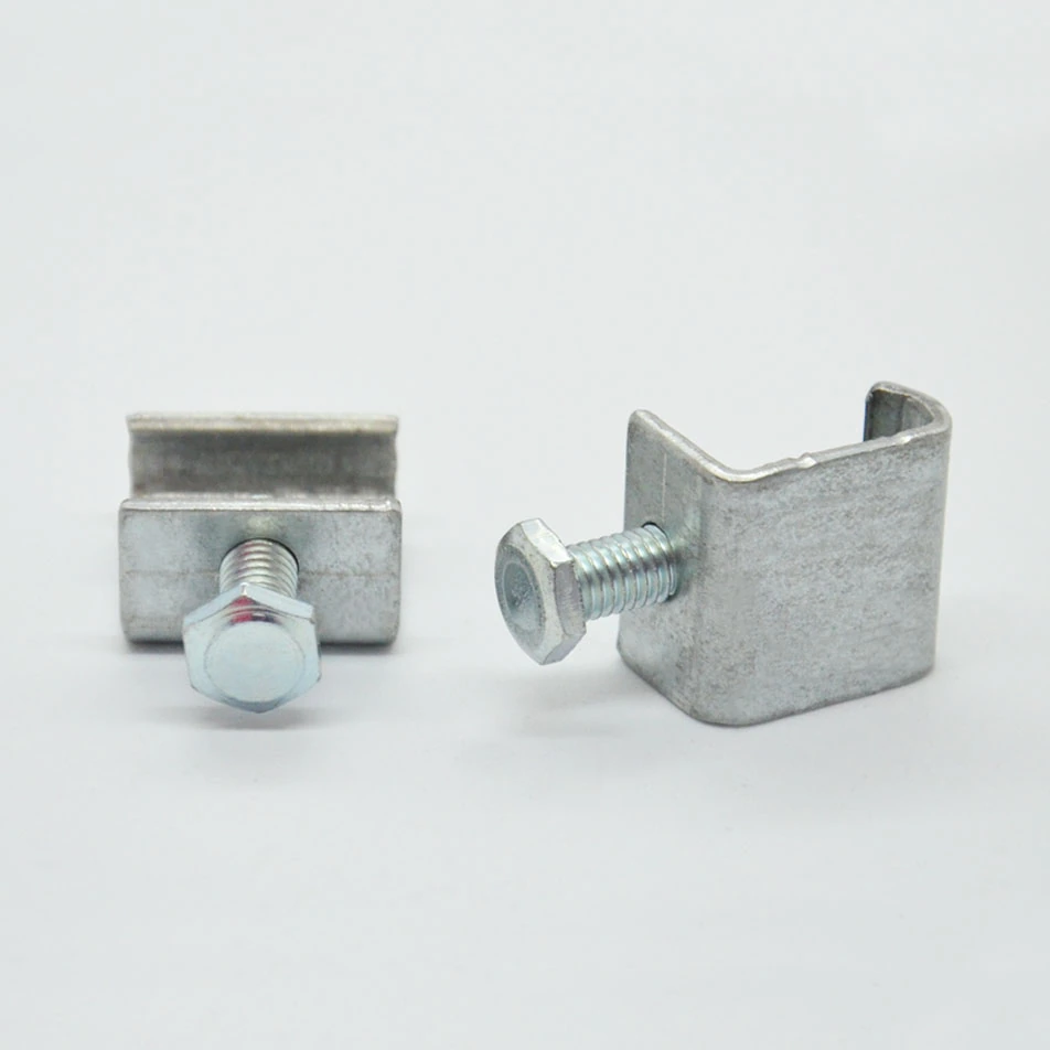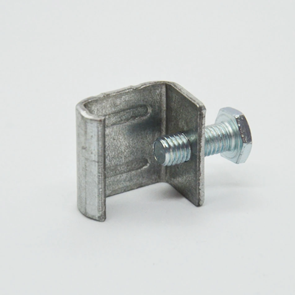 Крепежный элемент состоит из прочной штампованной стяжной скобы с нарезным отверстием, куда вставляется болт диаметром М8. Он имеет шестигранную головку, поэтому легко затягивается любым ключом соответствующего размера. Представляет собой дополнительную точку для крепления воздуховодных и других инженерных систем, прокладываемых в коробах. Скоба производится из углеродистой стали, а ее профиль придает ей дополнительную механическую жесткость. Она надежно соединяет элементы конструкций и затягивается при помощи болта.