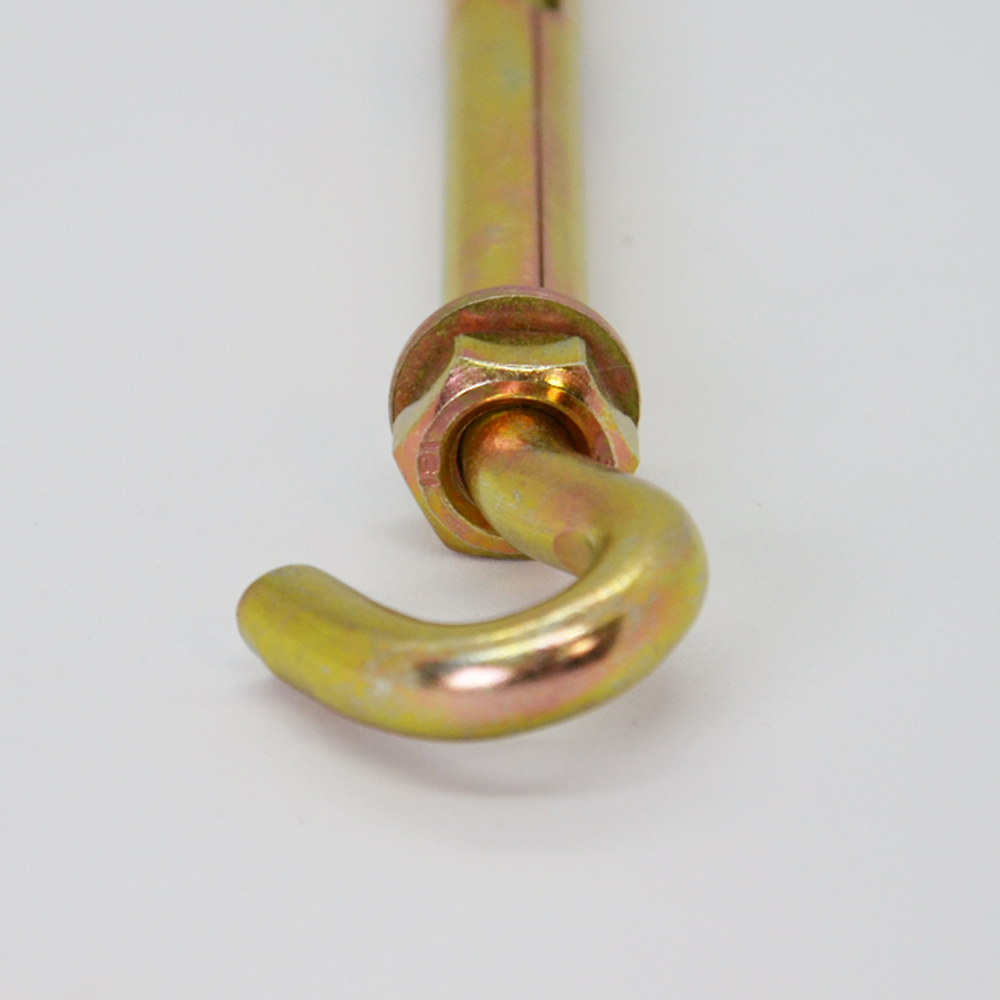 Анкер состоит из болта с наконечником в виде крюка, гайки и распорного конуса. Устанавливается в подготовленное отверстие. Анкера используют для крепления подвесных конструкций с применением гибких элементов, таких как цепи, тросы и канаты. Применяются анкерные болты на строительных площадках для установки в основания из бетона, природного камня, полнотелого кирпича и дерева.