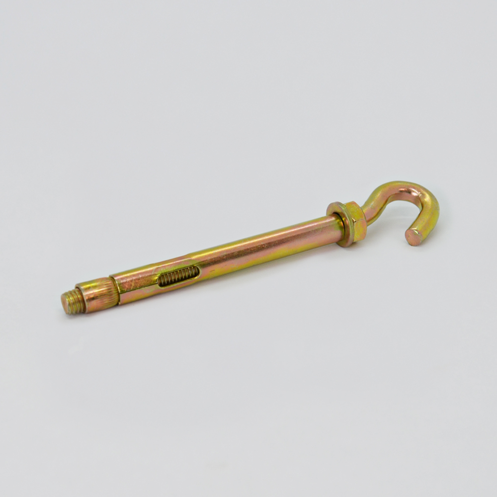 Анкер состоит из болта с наконечником в виде крюка, гайки и распорного конуса. Устанавливается в подготовленное отверстие. Анкера используют для крепления подвесных конструкций с применением гибких элементов, таких как цепи, тросы и канаты. Применяются анкерные болты на строительных площадках для установки в основания из бетона, природного камня, полнотелого кирпича и дерева.