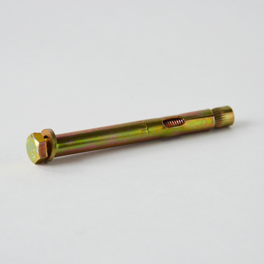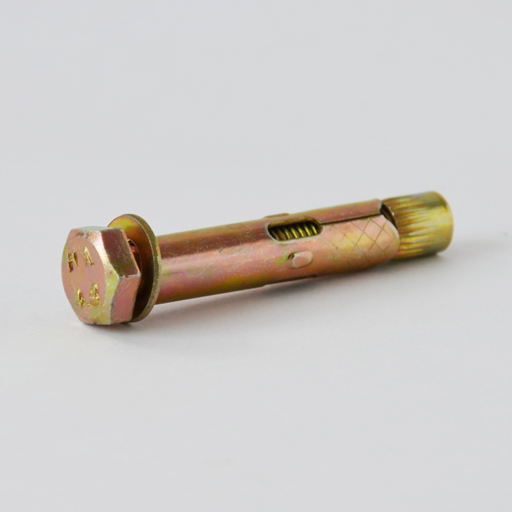 Анкер болт состоит из шестигранного болта, распорной цанги,и внешней оболочки (гильзы).Применяется для крепления тяжелых конструкций, либо если к точке крепления предъявляются повышенные эстетические требования. Крепление анкер болтами используется в случае работ электрическим гайковертом, так как, в отличии от анкерного болта с гайкой, у анкера с болтом не происходит смещения внутренней шпильки за пределы конструкции.