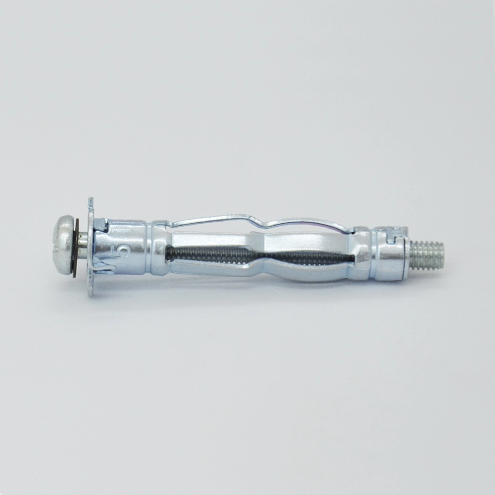 Дюбель молли очень хорошо конструктивно продуман. Он выполнен в виде металлического полого стержня, внизу имеется распорная часть, которая при монтаже очень широко раскрывается, образуя конструкцию по строению напоминающую зонт. На нижней стороне широкой шляпки расположены два шипа. В центр вставлен винт или винт-костыль, винт-кольцо, винт-полукольцо при помощи которого и происходит монтаж. с их помощью осуществляют крепеж в материал с пустотами, такой как гипсокартон или фанера. Крепят с помощью дюбелей молли, в основном, нетяжелые конструкции - светильники, картины и прочие.