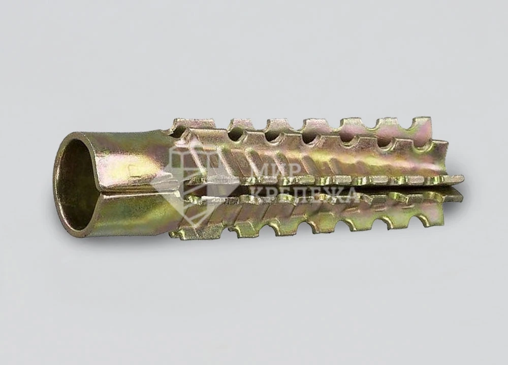 Дюбель металлический для газобетона предназначен для крепления строительных конструкций и материалов при помощи шурупов для древесины, ДСП, гипсокартона и др. к бетону, полнотелым и пустотелым кирпичам, пенобетону и блокам с пустотами, а также в местах с повышенными требованиями к пожаробезопасности.