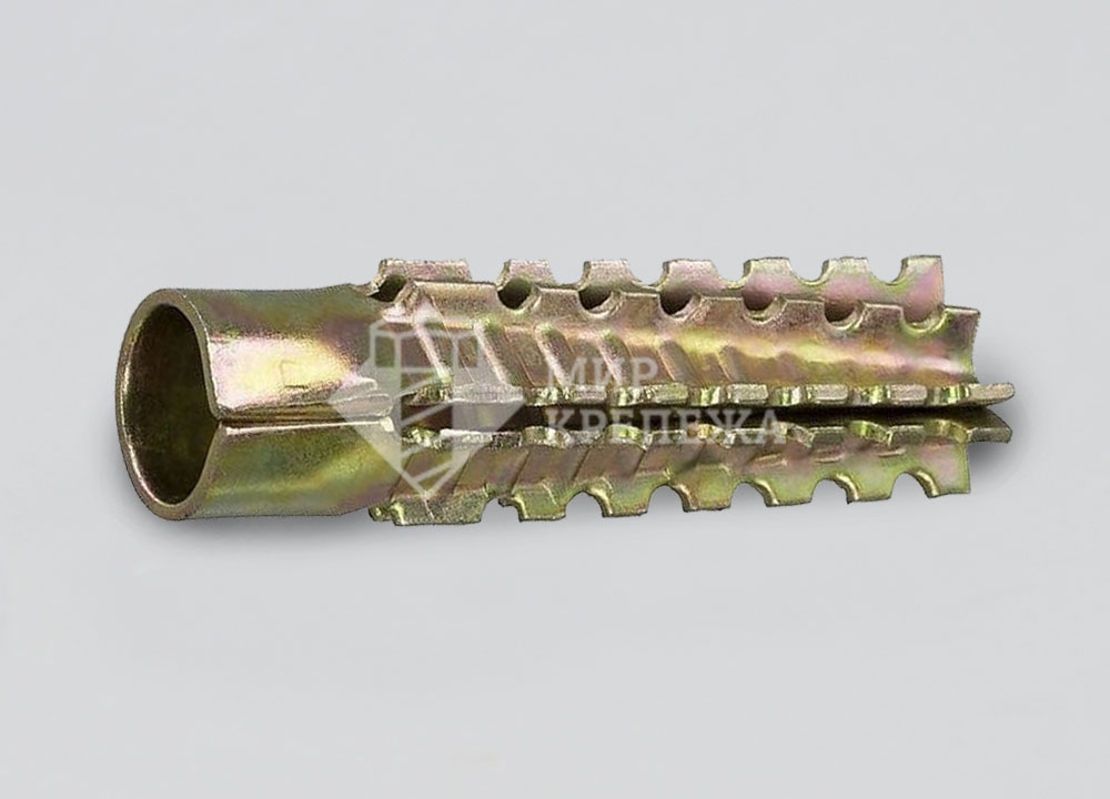 Дюбель металлический для газобетона предназначен для крепления строительных конструкций и материалов при помощи шурупов для древесины, ДСП, гипсокартона и др. к бетону, полнотелым и пустотелым кирпичам, пенобетону и блокам с пустотами, а также в местах с повышенными требованиями к пожаробезопасности.