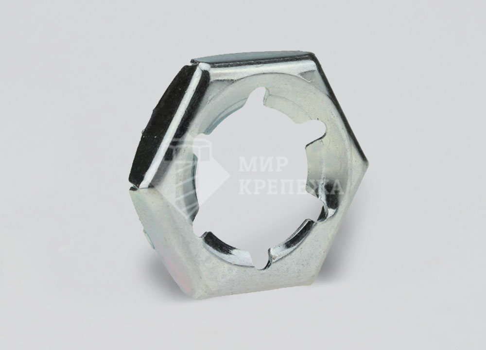 Гайка DIN 7967 оцинкованная стопорная пружинная предназначена для использования в условиях, где требуется дополнительная фиксация. Оцинкованная сталь повышает устойчивость к коррозии. Гайка применяется в конструкциях, где требуется надежное крепление.