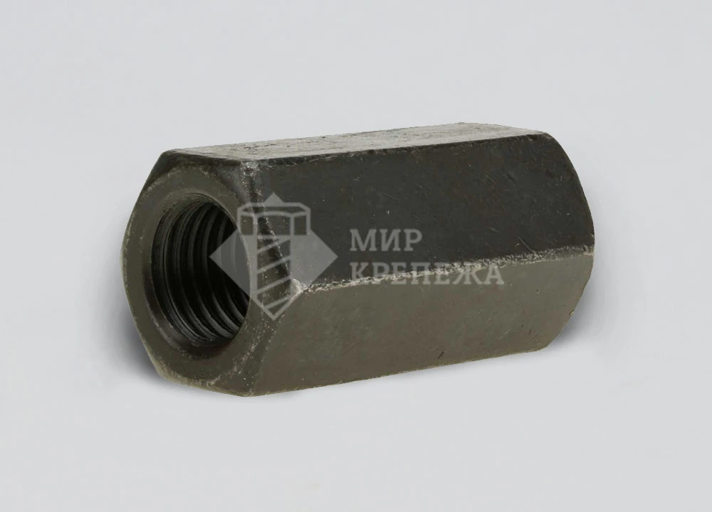 Гайка DIN 6334 удлиненная без покрытия соединительная отличается своей уникальной удлиненной формой, обеспечивая дополнительную прочность в местах с повышенными требованиями к длине резьбы. Гайка применяется в ответственных конструкциях для монтажа стержневых или трубчатых деталей, на концах которых есть наружная резьба равного диаметра.