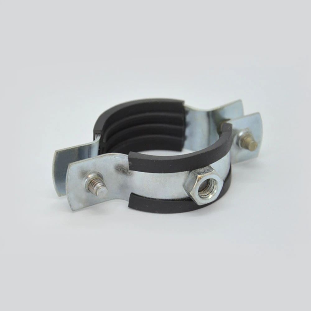 Хомут изготавливается из стали, прокладка - из высококачественной резины. Все металлические детали в обязательном порядке оцинковываются. С помощью трубного хомута трубы могут фиксироваться на полу, стенах или потолке. Данный вид хомута предназначен для надежного крепежа трубопроводов. Используется в сантехническом деле. Пользуется большой популярностью, за счет гарантии надежной фиксации.