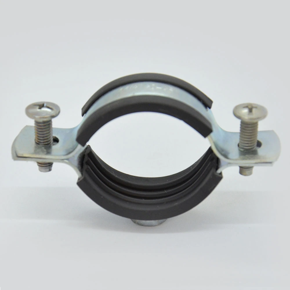 Хомут изготавливается из стали, прокладка - из высококачественной резины. Все металлические детали в обязательном порядке оцинковываются. С помощью трубного хомута трубы могут фиксироваться на полу, стенах или потолке. Данный вид хомута предназначен для надежного крепежа трубопроводов. Используется в сантехническом деле. Пользуется большой популярностью, за счет гарантии надежной фиксации.