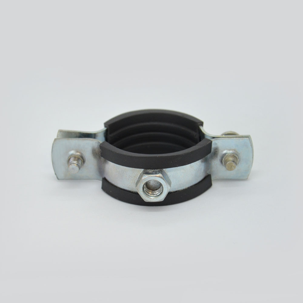 Хомут изготавливается из стали, прокладка - из высококачественной резины. Все металлические детали в обязательном порядке оцинковываются. С помощью трубного хомута трубы могут фиксироваться на полу, стенах или потолке. Данный вид хомута предназначен для надежного крепежа трубопроводов. Используется в сантехническом деле. Пользуется большой популярностью, за счет гарантии надежной фиксации.
