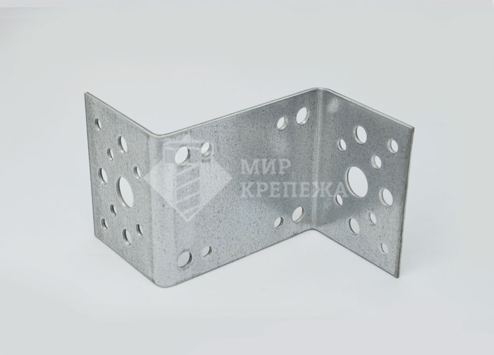 Крепежный уголок Z образный KUZ - уголок изготавливают из рулонной углеродистой холоднокатаной стали толщиной 2 мм. По всей поверхности расположены отверстия разного диаметра для монтажа уголка и других элементов конструкции. Уголок KUZ применяется для монтажа стропильной и подстропильной системы, предназначен для закрепления брусьев из дерева на разных уровнях высоты.