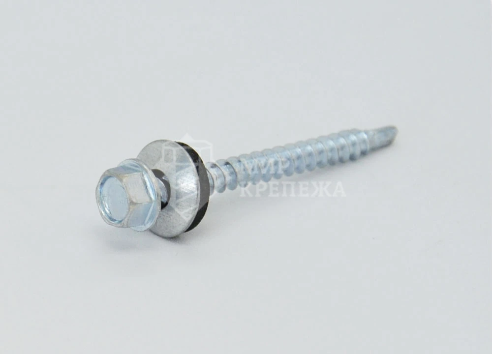 Саморез кровельный - изготавливается из углеродистой стали и имеет утолщенную шестигранную головку, метрическую резьбу, наконечник сверло и шайбу со специальной резиновой прокладкой. Кровельные саморезы применяются для сквозного крепления и уплотнения соединения кровельного железа, профлиста и различных металлических профилей к металлическим каркасам стен и крыш. Данный саморез пользуется большой популярностью благодаря особенностью конструкции, которая надежно гидроизолирует место крепежа.