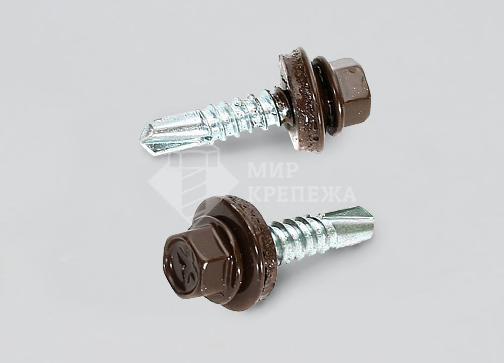 Саморез кровельный - изготавливается из углеродистой стали и имеет утолщенную шестигранную головку, метрическую резьбу, наконечник сверло и шайбу со специальной резиновой прокладкой. Кровельные саморезы применяются для сквозного крепления и уплотнения соединения кровельного железа, профлиста и различных металлических профилей к металлическим каркасам стен и крыш. Данный саморез пользуется большой популярностью благодаря особенностью конструкции, которая надежно гидроизолирует место крепежа.