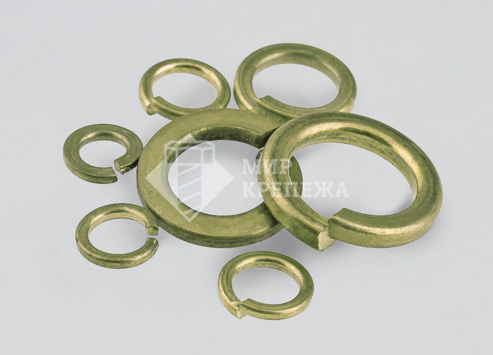 Шайба DIN 127 из цветного металла Гровер шайба пружинная разрезная одновитковая, форма А - острые кромки, форма В - притупленные кромки, для болтов, винтов и шпилек с диаметром резьбы от М2 до М100, обеспечивает пружинное действие для предотвращения ослабления соединений под воздействием вибрации. Цветные металлы, такие как латунь или бронза, предлагают дополнительную коррозийную стойкость и эстетический вид.