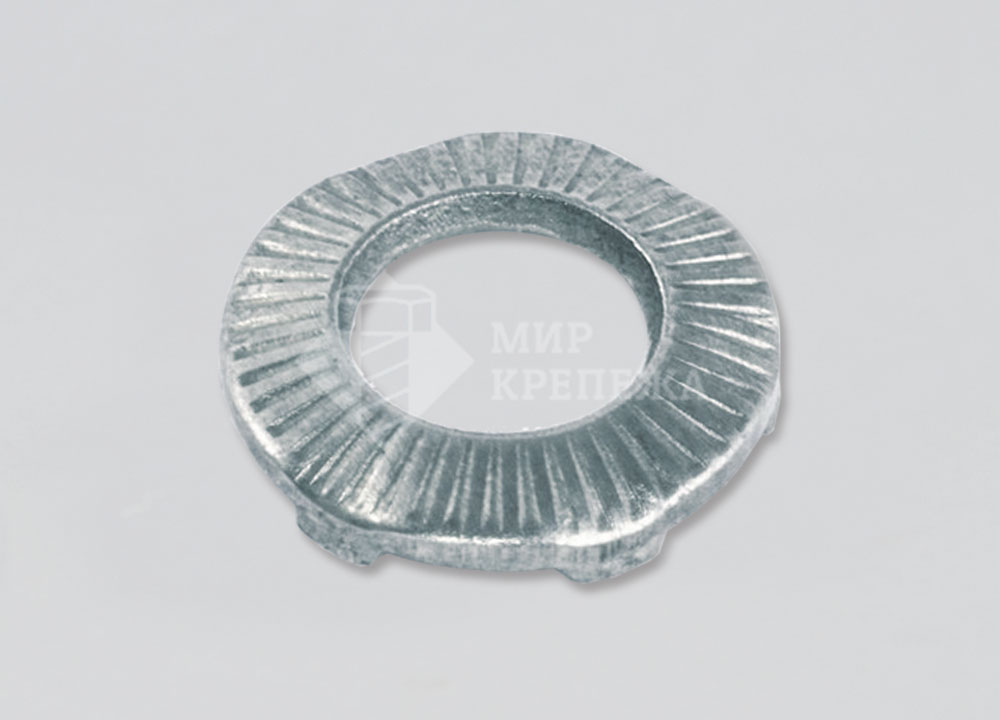 Шайба ART 88129 - имеет форму кольца, с рифленой поверхностью и “пеньками” по периметру. Выгнутая форма шайбы создает предварительную нагрузку на соединение, наличие резьбы снижает вероятность самораскручивания, а пеньки увеличивают давление на мм/2. Применяется на участках с высокой вибрационной нагрузкой.