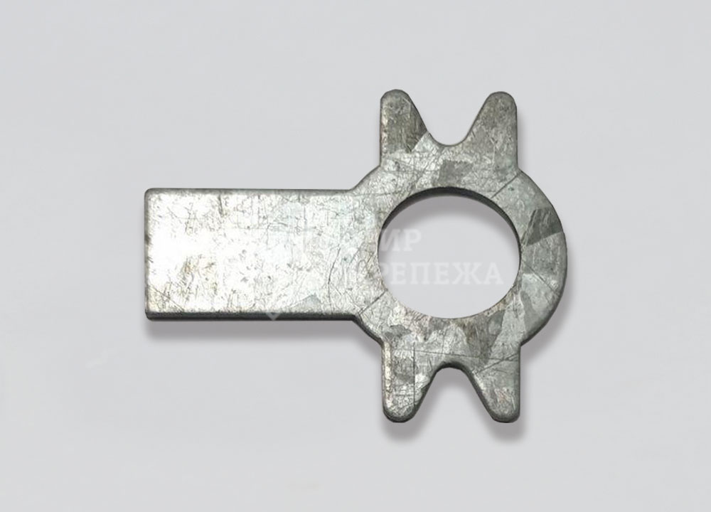 Шайба ГОСТ 13463 оцинкованная это плоская шайба с лапкой, предназначенная для стопорения шестигранных гаек и болтов с шестигранной головкой, с диаметром резьбы от 3 до 48 мм. Оцинкование повышает её устойчивость к коррозии, увеличивая срок службы в условиях влажности и агрессивных сред.