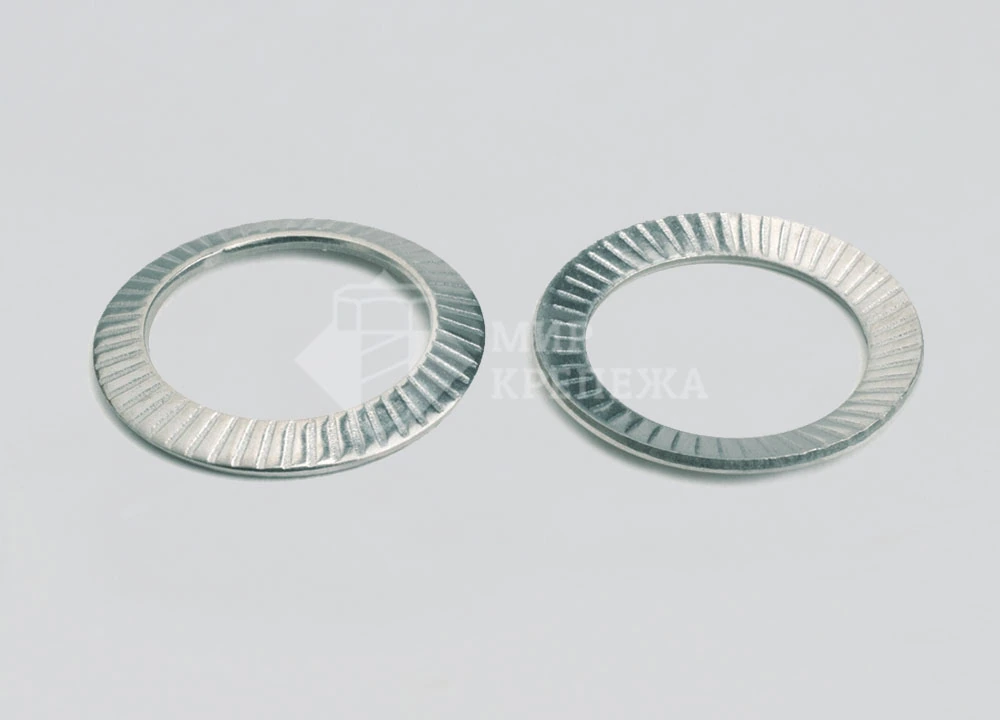Шайба ART 88121 - шайба имеет форму кольца, с рифлениями по всей поверхности. Шайбу используют на участках где подразумевается высокая вибрационная нагрузка. Немного выгнутая форма создает предварительное напряжение на соединении, которое защищает узел от ослабления при начале работы. Насечки по всему периметру защищают от самораскручивания. Используется для болтов/винтов класса прочности 8,8 и 10,9.