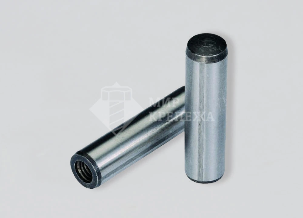 Штифт DIN 7979 - цилиндрический штифт с внутренней метрической резьбой. Изготавливается из закаленной стали. Для штифтов DIN 7979 гладких необходимо точное установочное отверстие, подготовленное при помощи развёртки. Применяется для взаимной точной фиксации деталей и передачи небольших нагрузок в соединении. Используется в различных производственных и промышленных отраслях: машиностроение, станкостроение, промышленность.