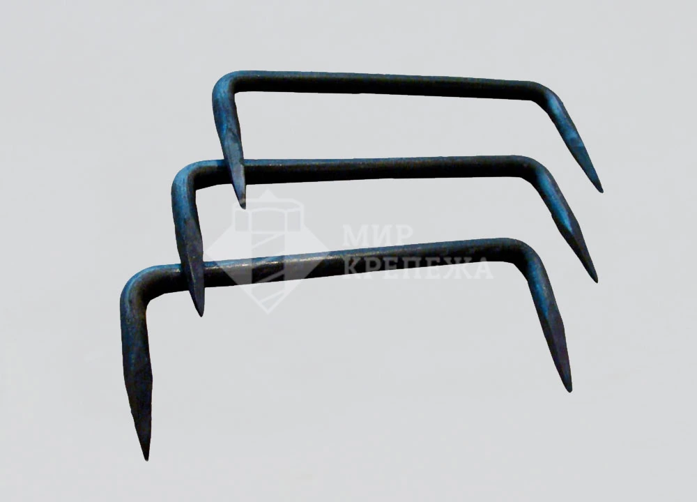 Скоба строительная представляет собой стальной прут согнутый в форме буквы П с удлиненной верхней частью и заостренными концами, предназначена для скрепления между собой деревянных изделий, бруса, брёвен и т.д. Монтаж происходит при помощи молотка или другого ударного инструмента.