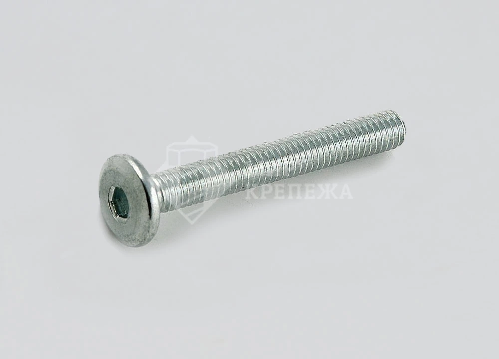 Винт чаще всего используется при сборке мебели. Имеет увеличенную головку что в свою очередь обеспечивает хороший прижим материала с уменьшением риска его деформации. Для затягивания используется шестигранный ключ и обычная гайка или стяжки.
