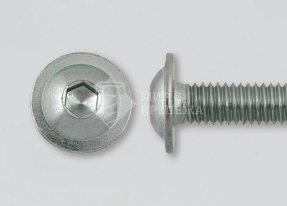 Винт ISO 7380 A2 с плоской скруглённой головкой, с буртом и шестигранным углублением под ключ. Достаточно часто данный винт используют при монтаже в станках и приборах. Кроме того, его применяют для крепления различных конструкций в таких сферах, как машиностроение, приборостроение и строительство. Для монтажа такого винта используют специальную шестигранную отвертку.