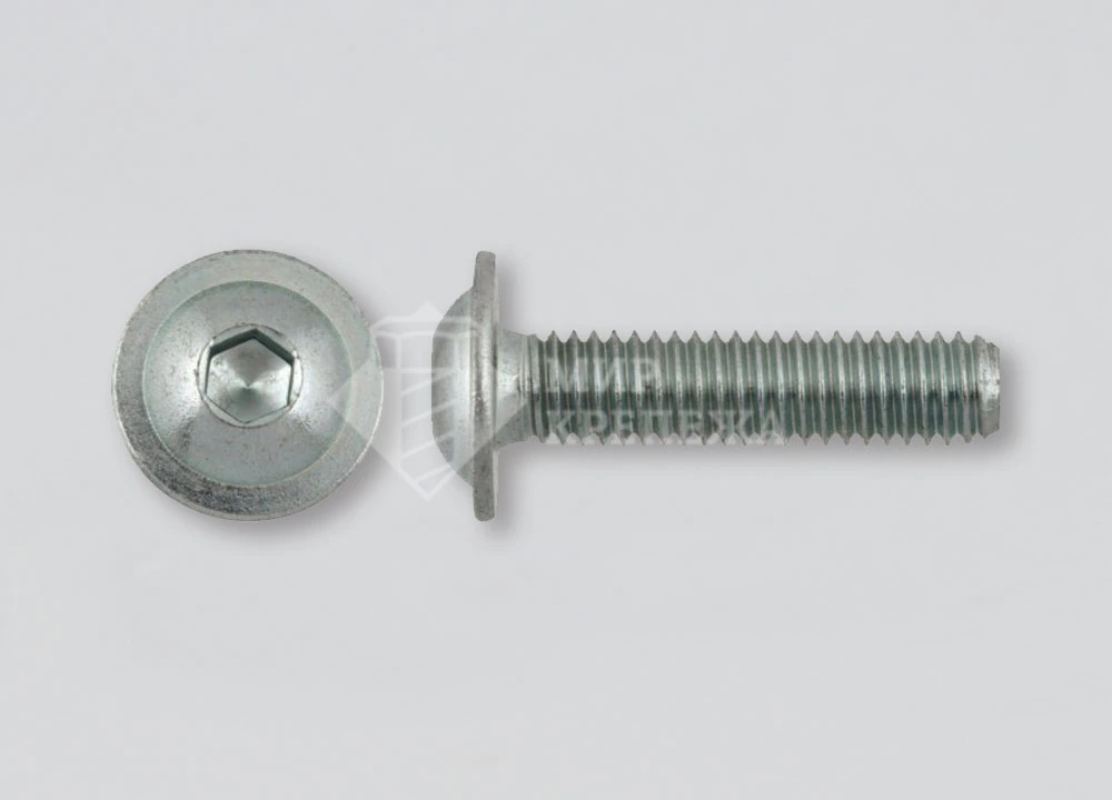 Винт ISO 7380 A2 с плоской скруглённой головкой, с буртом и шестигранным углублением под ключ. Достаточно часто данный винт используют при монтаже в станках и приборах. Кроме того, его применяют для крепления различных конструкций в таких сферах, как машиностроение, приборостроение и строительство. Для монтажа такого винта используют специальную шестигранную отвертку.