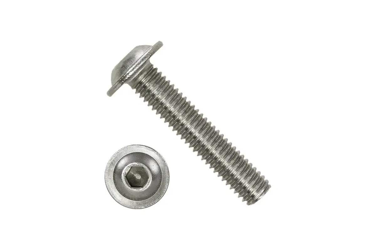 Винт ISO 7380 A2 с плоской скруглённой головкой, с буртом и шестигранным углублением под ключ. Достаточно часто данный винт используют при монтаже в станках и приборах. Кроме того, его применяют для крепления различных конструкций в таких сферах, как машиностроение, приборостроение и строительство. Для монтажа такого винта используют специальную шестигранную отвертку.