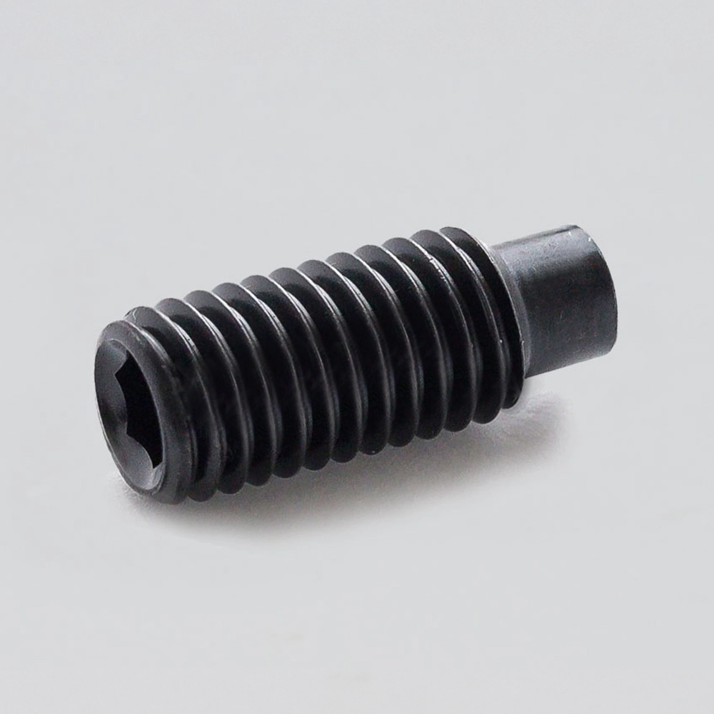 Винт DIN 915 установочный без покрытия с цапфой и внутренним шестигранником подходит для крепления в местах, где требуется точная регулировка. Монтаж осуществляется с помощью применения соответствующего имбусового ключа. Обратная часть выполнена в виде ступенчатого нажимного конца.