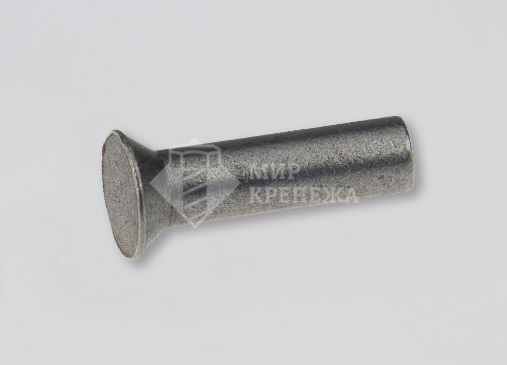 Заклепка ГОСТ 10300 - заклепка забивная стальная с потайной головкой используется для крепление изделий из металла. Соединение происходит в предварительно просверленное круглое сквозное отверстие. Потайная головка способствует монтажу вровень с прикрепляемыми материалами. Производство данных заклепок осуществляется из углеродистой стали по стандарту ГОСТ 10300-80.