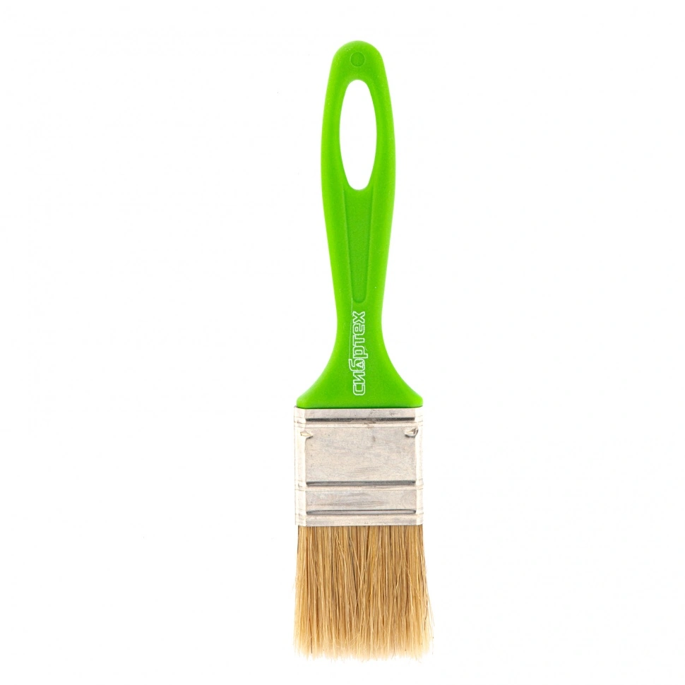 Кисть флейцевая Сибртех «Евро» 83301 шириной 35 мм и толщиной 8 мм, с натуральной щетиной и пластиковой ручкой, предназначена для первичного окрашивания либо создания финишного слоя на небольших или узких участках поверхности. Кисть обладает хорошими краскообменными качествами и подходит для любых видов лакокрасочных материалов (ЛКМ).ПреимуществаНатуральная щетина двойной выварки обеспечивает высокое качество декоративного покрытия.Кисть хорошо поглощает и отдает краску, т.к. щетинки расщеплены на концах.Натуральная щетина устойчива к воздействию агрессивных сред и не теряет рабочих свойств при контакте с ЛКМ на основе растворителей.Оптимально подобранный клеевой состав, клинья и металлический бандаж надежно удерживают щетину.Бандаж имеет антикоррозионное покрытие, поэтому кисть можно замачивать в воде и растворителе.Легкая пластиковая рукоятка не утяжеляет кисть и удобно ложится в руку.На рукоятке есть отверстие, за которое кисть можно подвешивать.