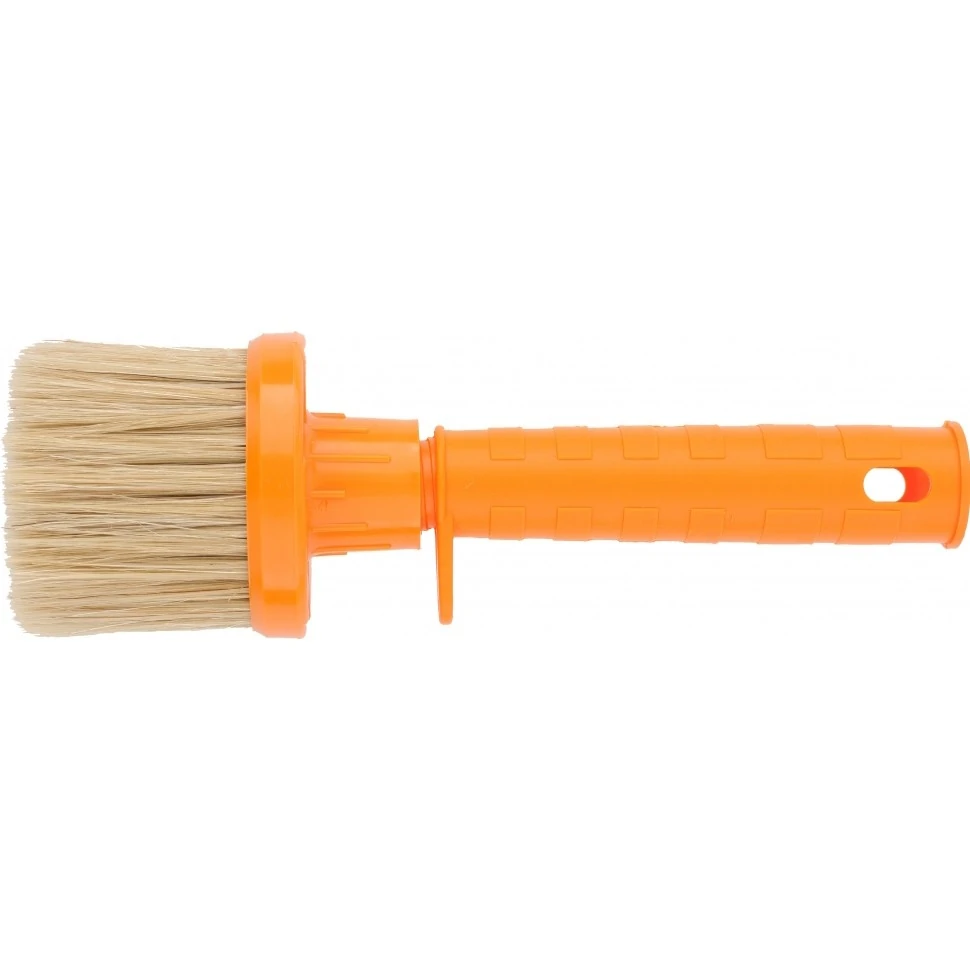 Маховая кисть Matrix Color Line «ФАСАД» 83397 диаметром 80 мм предназначена для окрашивания грубых шероховатых поверхностей и обширных участков. Используется при проведении фасадных работ. Рабочая часть изготовлена из высококачественной натуральной щетины (показатель ТОПС не ниже 70%) с расщепленными кончиками, которая набирает и удерживает большой объем краски, — это обеспечивает высокую производительность кисти. Щетина устойчива к воздействию агрессивных сред, поэтому может использоваться с лакокрасочными материалами на основе растворителей.ПреимуществаРабочая часть кисти изготовлена из натуральной щетины двойной проварки, обеспечивающей отличное распределение краски по поверхности, за счет чего достигается высокое качество покраски.Щетина закреплена при помощи эпоксидного клея уникального состава, клиньев и бандажа, поэтому не выпадет при длительном контакте с водой или химическими веществами.Кисть прослужит долго, т.к. пластиковые клинья не разрушаются и предотвращают деформацию кисти при замачивании.Защи