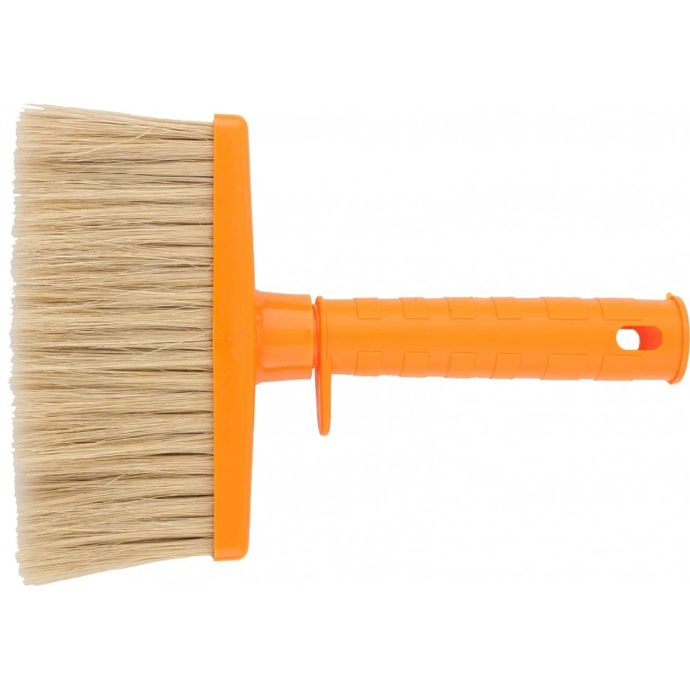 Плоская кисть Matrix Color Line «ФАСАД» 83398 шириной 140 мм и толщиной 50 мм предназначена для окрашивания грубых шероховатых поверхностей и обширных участков. Используется при проведении фасадных работ. Рабочая часть изготовлена из высококачественной натуральной щетины (показатель ТОПС не ниже 70%) с расщепленными кончиками, которая набирает и удерживает большой объем краски, — это обеспечивает высокую производительность кисти. Щетина устойчива к воздействию агрессивных сред, поэтому может использоваться с лакокрасочными материалами на основе растворителей.ПреимуществаРабочая часть кисти изготовлена из натуральной щетины двойной проварки, обеспечивающей отличное распределение краски по поверхности, за счет чего достигается высокое качество покраски.Щетина закреплена при помощи эпоксидного клея уникального состава, клиньев и бандажа, поэтому не выпадет при длительном контакте с водой или химическими веществами.Кисть прослужит долго, т.к. пластиковые клинья не разрушаются и предотвращают деформацию кисти при