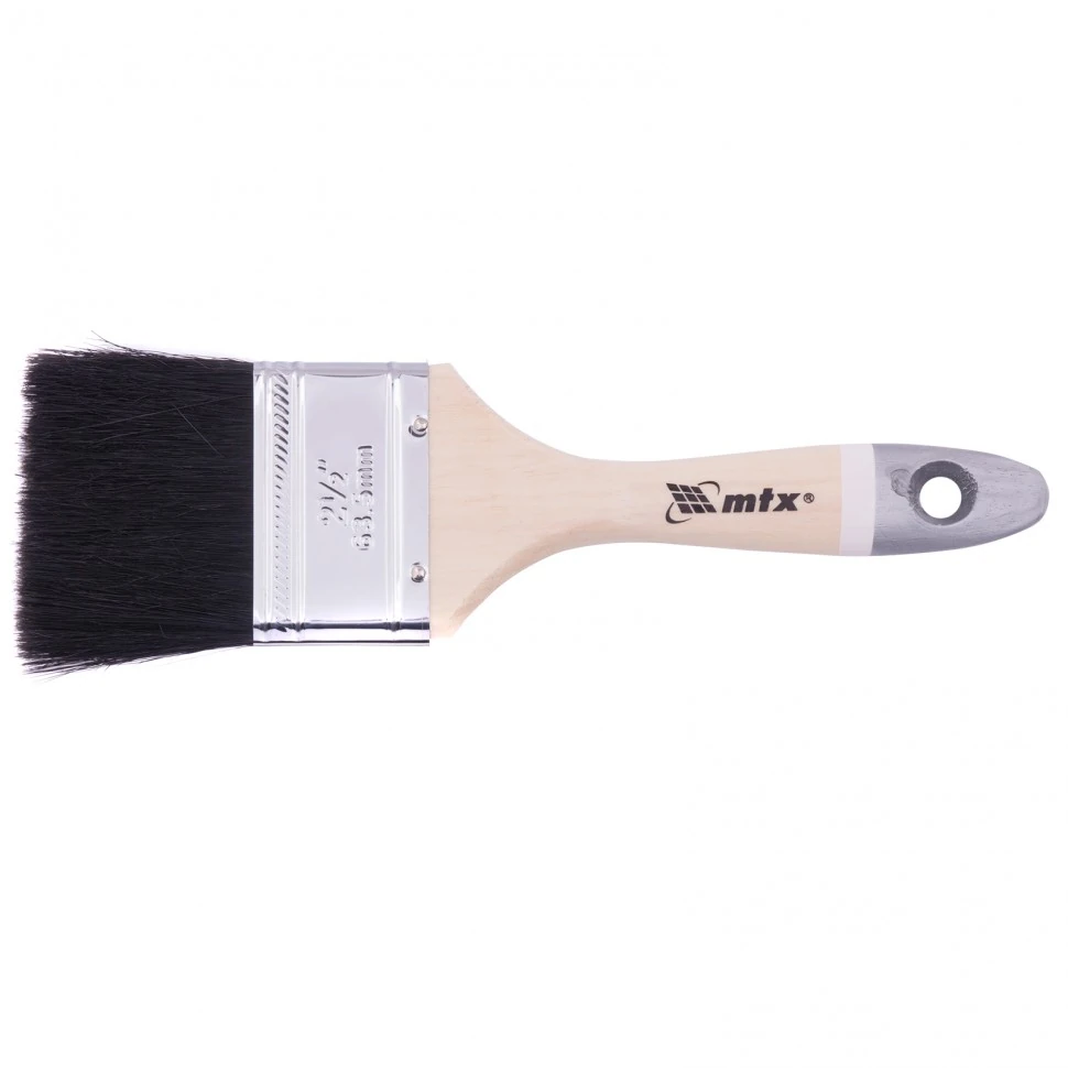 Плоская кисть MTX 82636 шириной 2,5 дюйма, с натуральной черной щетиной и деревянной рукояткой, применяется при проведении малярных работ как внутри, так и снаружи помещений. Жесткая и упругая щетина отличается повышенной износостойкостью, что позволяет использовать кисть для окрашивания грубых поверхностей красками на агрессивной основе: масляными и с содержанием растворителей. Средней по ширине кистью удобно окрашивать небольшие участки.ПреимуществаВысокое качество работы — щетина изготовлена методом двойной выварки и не содержит посторонних примесей.Долговечность — щетина не выпадает благодаря металлическому бандажу, с помощью которого зафиксирована на рукоятке.Антикоррозийное покрытие — бандаж надежно защищен от образования ржавчины.Расщепленная на концах щетина — кисть хорошо впитывает, удерживает и отдает ЛКМ, обеспечивая их равномерное нанесение.Комфортная работа — ручка из отборной древесины отшлифована, поэтому не проскальзывает в руке.Отверстие в ручке — кисть можно хранить в подвешенном виде.